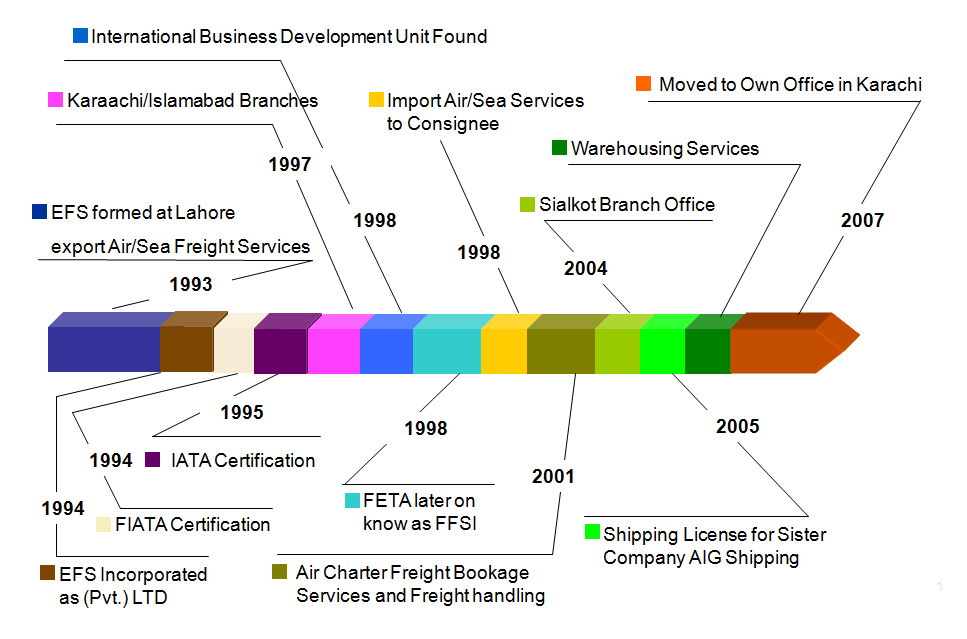 EFS Systems (Pvt.) Ltd. was formed in 1993 to satisfy customer's requirements in commercial and industrial segments. Since then business has developed well and is expanding successfully. Here is the brief history of the Company as it progressed over the decades;